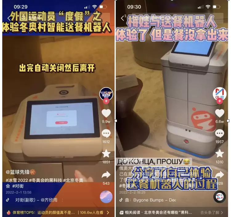 日前,更有参加冬奥的外国运动员在网络媒体晒出在冬奥村内,体验九号方糖配送机器人智能送餐的视频,并被国内诸多媒体转载。