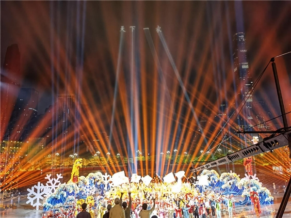此次冬奥会开幕式深圳分会场突出“冬奥+时尚+科技”的创新,共有四个维度的表演空间,光峰科技以全球领先的激光投影灯承担起第二维度演出空间的重任。
