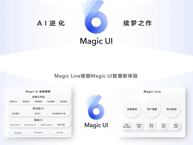 该机型搭载了全新的Magic UI 6.0系统和独立安全储存芯片,但大家都能看出来,Magic UI 6.0其实就是鸿蒙2.0的套娃版,同样支持多设备智能协同,主打智能生活,协同办公等。手机、平板和 PC 间无缝互传,支持 Windows PC 之间高速互传以及跨设备协同支持键盘鼠标共享及屏幕扩展,和鸿蒙OS没有什么区别了。