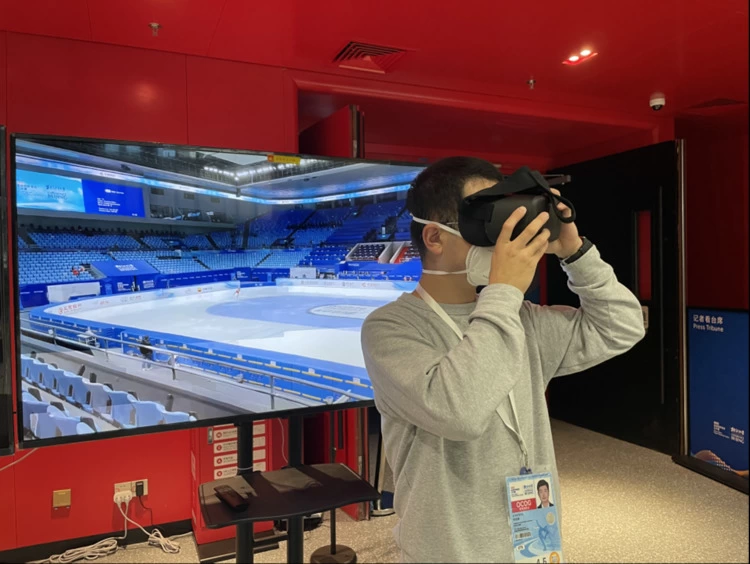 图为创维VR现场测试照片,由“科技冬奥”重点专项“冰雪项目交互式多维度观赛体验技术与系统”项目组提供