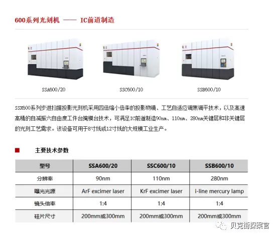 所以想要完全体现后道、面板芯片的价值,就要先拥有性能优良的前道芯片。在前道光刻机制造中,其实光刻机并不是按照“NM”数分类的,而是以光源波长来划分为,采用436nm光源的“g-line光刻机”;365nm光源的“i-line光刻机”;248nm光源的“KrF光刻机”;193nm深紫外光源的“DUV光刻机”;以及采用13.5nm极紫外光源的“EUV光刻机”,这也是目前被卡脖子的主要产品。
