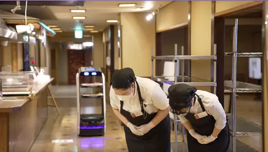 据日本共同社报道,去年1月至11月792家餐饮企业破产,比往年同期增加8%。考虑到近期疫情和政府为此出台的防疫隔离措施,日本今年破产餐饮企业数量预计将打破2011年的最高纪录。虽然日本的疫情防控在全球一直处于先进水平,但禁不住漫长的疫情周期,人们的生活习惯已经慢慢发生了改变。智能机器人负责菜品从后厨到餐桌的配送,减轻餐厅防控的压力,同时节省人工成本,另一方面也用于打消顾客的心理顾虑。目前,送餐机器人Keenbot IRIS EDITION已在日本的新加坡海鲜共和国东京餐厅、Katayamazu Onsen新丸屋酒店以及“Pepper PARLOR”机器人主题咖啡厅等投入使用。在新加坡海鲜共和国东京餐厅的后厨接到顾客点单后,机器人负责餐品从后厨到餐桌的配送,不但可以减轻餐厅防控的压力,省了不少人工,另一方面也打消了这些顾客的心理顾虑,在日本疫情仍未退去的特殊时期下,这样的无接触配送很受欢迎。