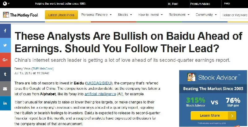 根据金融服务公司Motley Fool的报道显示,瑞士信贷的分析师Thomas Chong将百度股票目标价格上调至290美元,同时给予 “增持”评级(鼓励多买入)。在致客户信中他表示,作为中国量级最大的搜索服务平台,百度的用户基数依然在持续增加。极高的用户活跃度将为整个平台带来活力,因此百度可以远远超越同行。
