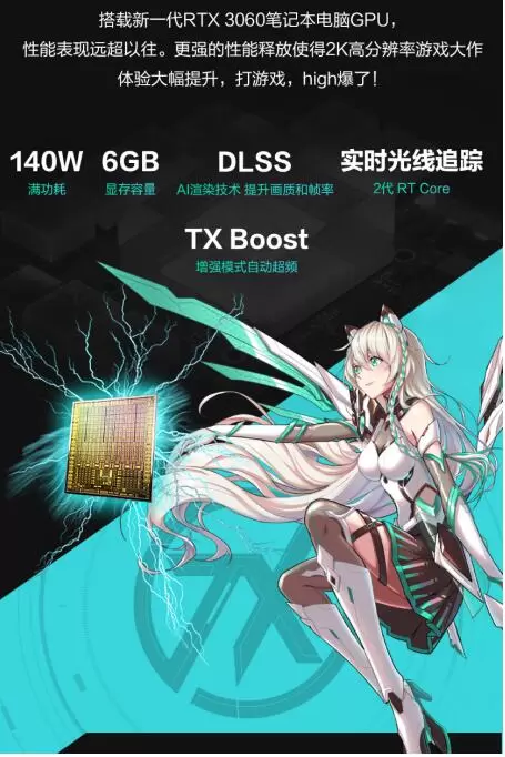 配备NVIDIA GeForce RTX 3060笔记本电脑GPU,140W满功耗释放,支持“双显三模”显卡切换