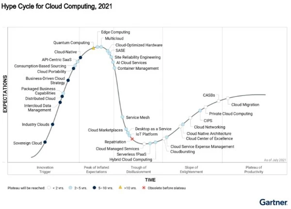 近日,权威调研机构Gartner发布《Hype Cycle for Cloud Computing》(《云计算技术成熟度曲线报告》)。云计算作为当前主流的计算模型,是将IT作为服务交付的基础,报告分析了目前行业主要应用的云技术,及为满足未来需求而出现的创新技术方向,以帮助用户了解不同技术的成熟度周期,为云计算产业发展提供更多借鉴。报告中Gartner指出,在硬件方面,面向大规模云数据中心的云优化硬件创新正不断发展,将在未来2-5年进入大规模成熟应用。浪潮信息、AWS等4家厂商成为Gartner推荐的Cloud-Optimized Hardware(云优化硬件)标杆厂商。