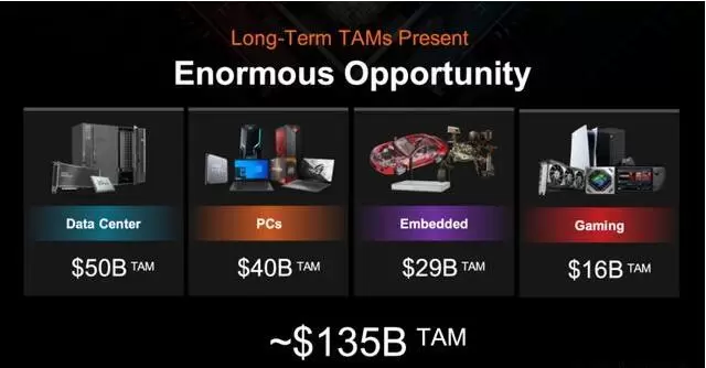 AMD 总裁兼首席执行官 Lisa Su 博士表示:“对赛灵思的收购带来了一系列高度互补的产品、客户和市场,结合差异化的知识产权和世界级的人才,创造了业界高性能和自适应计算的领导者。赛灵思提供业界领先的 FPGA、自适应 SoC、人工智能引擎和软件专业知识,使 AMD 能够提供业界最强大的高性能和自适应计算解决方案组合,并在我们看到的跨越云、边缘和智能设备的约 1350 亿美元的市场机会中获得更大份额。"