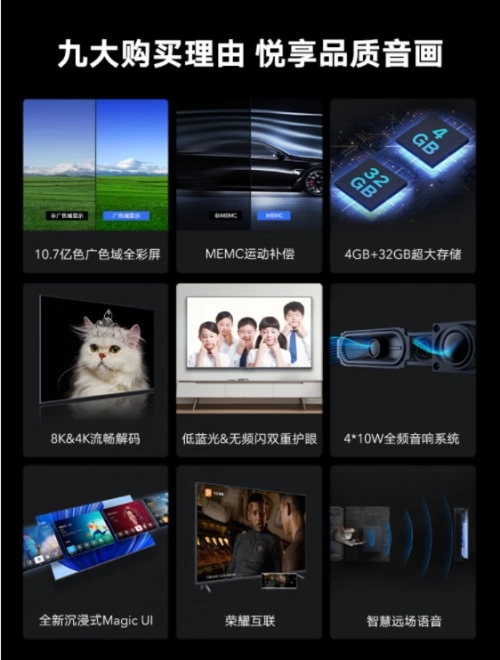 荣耀CEO赵明也曾多次表明荣耀智慧屏以消费者需求为先,并将继续坚持“开关机无广告”的信念,为广大消费者提供值得信赖的好产品。去年双十一狂欢购物期间,荣耀智慧屏X2系列作为京东双11战略级电视新品,其65英寸的单品销量和销售额均取得了不凡成绩,双11首日就赢得了京东家电开门红双冠军,延续了上代产品的过硬产品力。