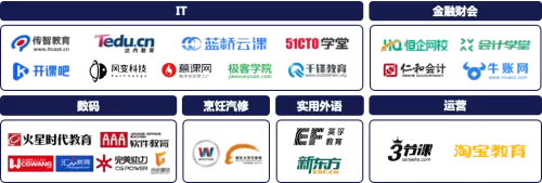 大部分技能品类围绕信息技术和金融财会的技能培训品类以知识型大班课和项目制小班课的形式为主,传统的在线化方案通过直播课和录播课结合的形式进行线上交付。根据公开资料整理,技能培训赛道线上占比约为47.2%,基本与线下分庭抗礼。