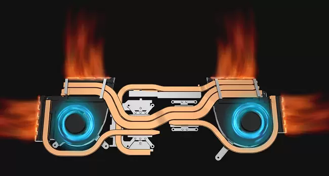 由于核心规格加码,在全面释放性能时,伴随高功耗的是发热问题。为此,天选3不仅在模具上进行升级,同时以增大型出风口+全新Arc Flow双风扇+5热管的设计,在高负荷时为机身散热保驾护航。即使是高强度、长时间的激战,华硕天选3锐龙版也可疾速驱散热量。