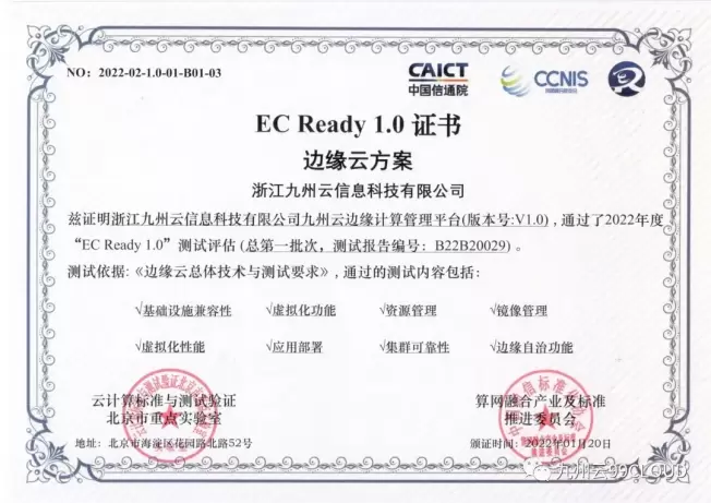 - 厉害了!九州云边缘计算管理平台获国家权威认证
