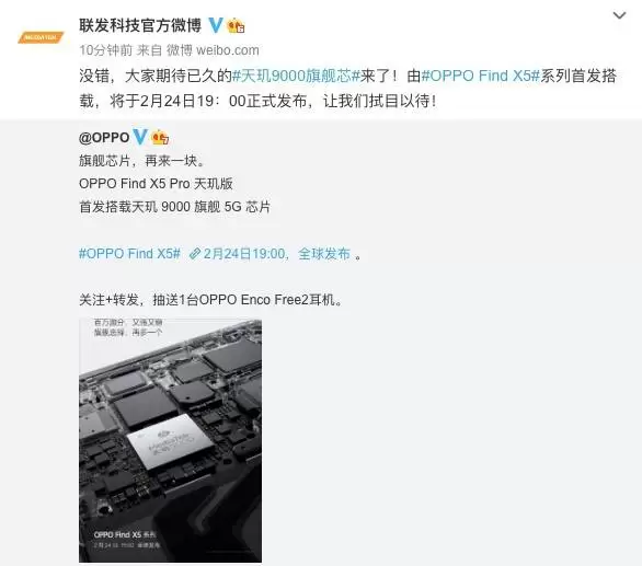 OPPO官宣2月24日正式发布Find X5 Pro天玑版,百万跑分,又强又稳(图源OPPO官微)