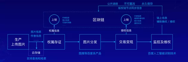 正式上线的图腾,通过引入区块链技术,并借助百度搜索的平台力量以及第三方合作伙伴的生态力量,构建了一个覆盖图片生产、权属存证、图片分发、交易变现、侵权监测、维权服务的全链路版权服务平台。