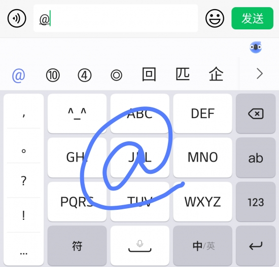 艾特@符号在我们社交活动中频繁使用,比如在微博圈出某人,在微信聊天中提醒所有人,或者输入邮箱发送mail,如果没用艾特感觉一天都没有开展社交活动。大多数人都知道用PC键盘打出@符号,而很多小伙伴却不知道如何在手机上快速打出。其实用讯飞输入法打出这个符号相当简单,而且还不止一种输入方法,不妨一起来了解一下。