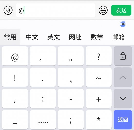 都说“术业有专攻”,作为被广泛青睐的讯飞输入法,自然有其专业技能,比如提供符号键盘。在默认布局中,九宫格键盘左下方设置独立的“符”键,点击可进入符号键盘。这里内置有大量常用符号,在展开的符号键盘中点击@即可快速上屏。