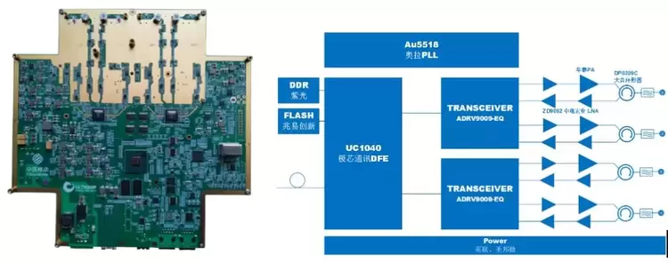 极芯通讯与多家芯片厂商合作,实现UC1040与多射频收发信机(Transceiver)互联。UC1040芯片完成了ADI的ADRV9009、ADRV9025、ADRV9026和TI的AFE7769无缝互连。用户可选择UC1040内置数字预失真(DPD)功能,也可以选择具有DPD功能的收发信机芯片,以优化产品成本、功能和性能。