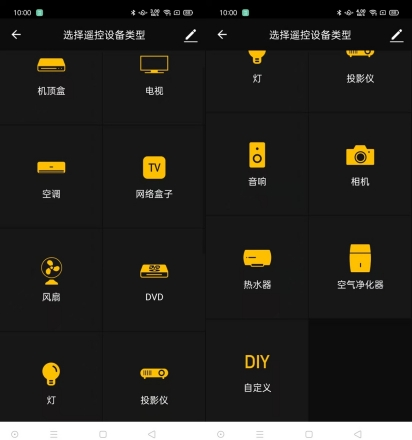 初次连接使用时我发现,向日葵智能远控遥控器KH1所支持的电器类别着实另人大为赞叹,常见的电视、机顶盒、空调、电扇、净化器等你所能想到的应有尽有。甚至你还能通过DIY自定义学习添加更符合自己操作习惯的遥控器,拥有特别广泛的适用性和可拓展性。