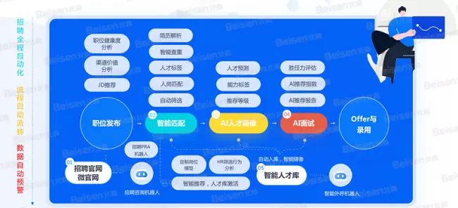 北森认为,对于Z世代的人才评估几乎贯穿于从职位发布、只能匹配、AI人才画像、AI面试到Offer与录用的每一个环节。