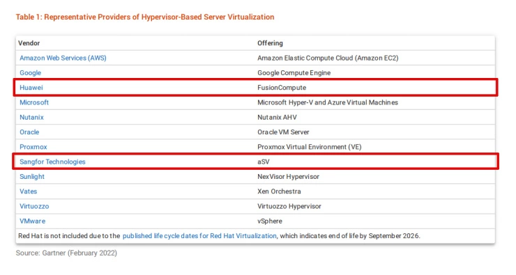 Gartner发布服务器虚拟化市场指南 中国仅入选华为与深信服