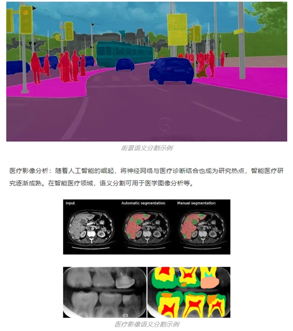 无人车驾驶:语义分割也是无人车驾驶的核心算法技术,车载摄像头,或者激光雷达探查到图像后输入到神经网络中,后台计算机可以自动将图像分割归类,以避让行人和车辆等障碍。