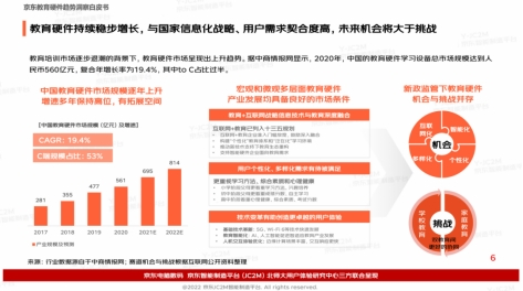 北京师范大学心理学部应用心理专业硕士用户体验硕士方向负责人刘伟认为:“人工智能+教育”将成为教育行业未来的主要发展趋势。而以京东为代表的新型实体企业,让技术在教育硬件领域的落地价值加速释放,实现新兴技术在教育硬件供给侧提速升级以及需求侧的完美结合,满足消费者多元需求,促进了教育行业的质量与水平进一步提高。