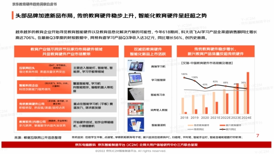 现如今,自家娃一放学就用打印机准备好学习材料,再打开学习平板安排上最新同步的课程,然后让孩子坐在书桌前打开智能学习灯自动提醒矫正坐姿,为了让孩子能健康学习,大批新智家长也是下了一番功夫。而这一普遍现象也让平板等多元教育硬件成中用户群体硬通货,为教育市场焕发新机带来了新机遇。
