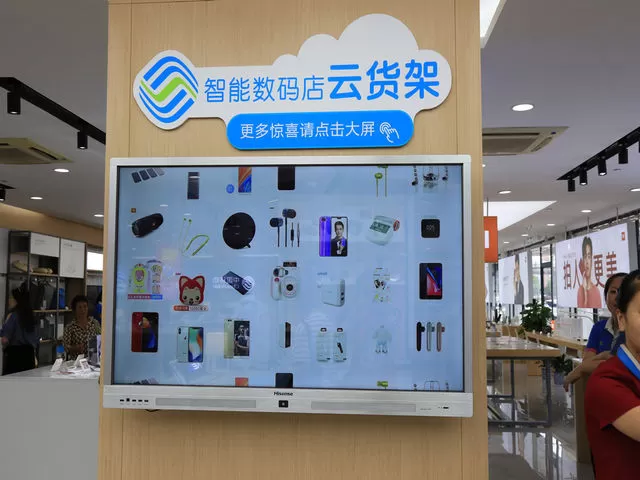 在终端销售展示区,大约有60多款各品牌机型,都与智能电子标签连接,体验真机之余同时可以扫产品二维码浏览产品的详细信息和参数,方便客户进行选择,还能够通过二维码在线下单。现场工作人员表示,对于店内没有陈列实物的产品,消费者还可以在‘云货架’专区的大屏幕上,直接扫码下单,物流可以从仓库直接配送到家。