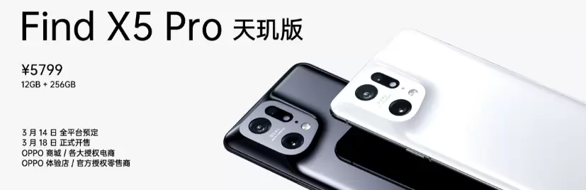 凭借出色的性能和能效,天玑9000助力OPPO Find X5 Pro天玑版带来旗舰体验,让旗舰手机多一个选择。OPPO Find X5 Pro天玑版拥有白瓷、黑釉两款色彩,12GB+256GB版本售价5799元。3月14日起接受全平台预订,将于3月18日正式开售,在OPPO商城、各大授权电商渠道,以及OPPO体验店、官方授权零售商处可以买到。