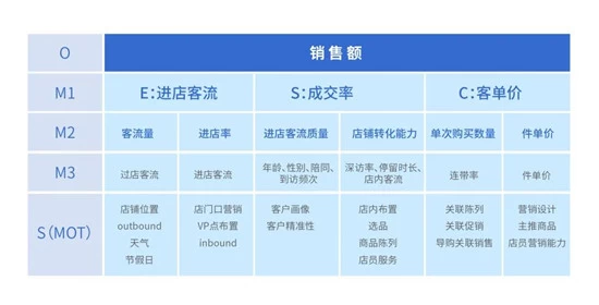 OSM模型是基于业务框架构建指标体系的重要方法。适用于目标清晰(O),策略(S)和行动已经明确的场景。在电商、小程序、社群运营等渠道大行其道,但到了线下场景变得复杂,变化日新月异,行动方向有太多的选择。好在线下的场相对固定,我们可以先建立衡量指标(M),再对策略(S)进行遐想,根据业务场景不断创新和延展。
