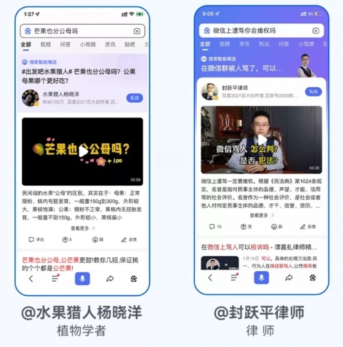 百度搜索为百家号优质创作者全面赋能,“C位直达”的显示结果强化了创作者IP属性。专业作者名称介绍、人物形象图片及内容核心答案概述相辅相成,丰富的内容展示形式加强了用户对创作者的信任,同时用户能够实现和创作者的双向互动。