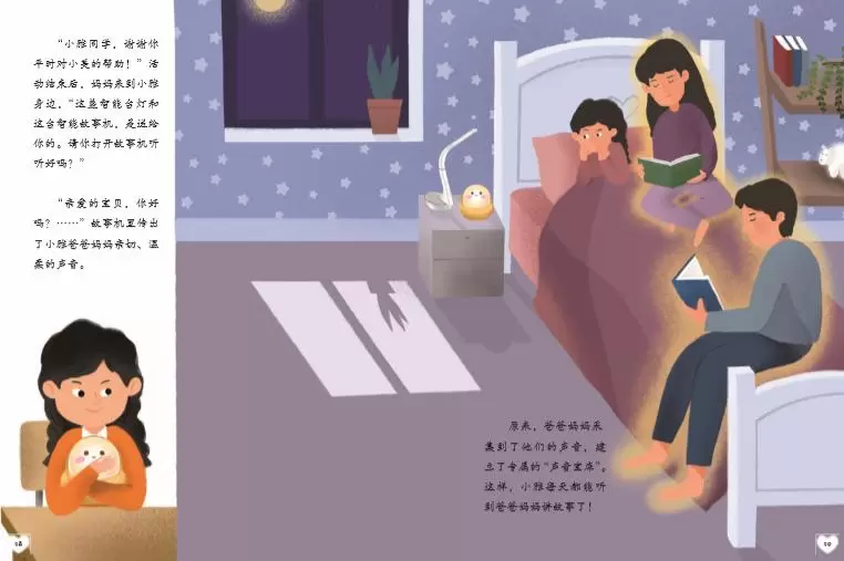 难道人工智能只是冷冰冰的程序吗?随着故事的发展,我们发现,小美的科学家爸妈正是用人工智能为“人世间”的老百姓提供温暖的陪伴。小美的好朋友小雅因为父母常年在外地工作,对爸爸妈妈充满了思念,小美的爸妈就让故事机学会了小雅爸爸妈妈的声音,让小雅的爸爸妈妈可以借助声音随时随地陪伴在小雅的身边。