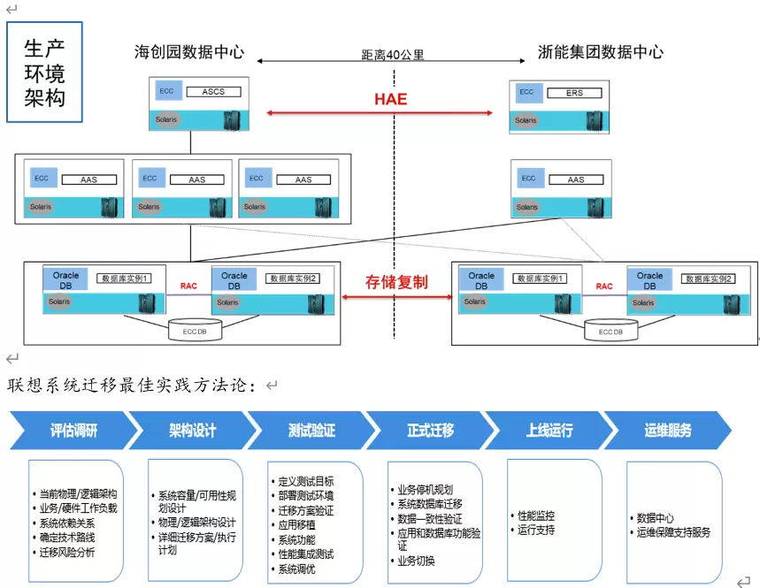 据联想服务方案部门资深架构师方伟介绍联想技术团队在经过调研、评估后,根据浙能集团的需求,制定了数据中心备灾和ERP应用双活方案,于2021年开始实施服务器迁移工作。这个方案满足了浙能集团要求的减少意外造成的系统宕机时间、减少可预期系统关闭时间,保证了主数据中心在出现故障时,能切换到灾备中心继续支持业务的需求。