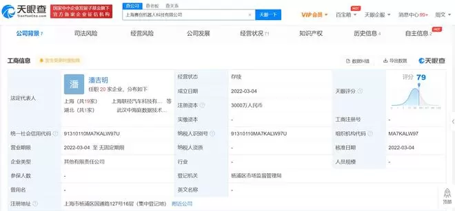 3月4日,上海赛创机器人科技有限公司成立,注册资本3000万元人民币,经营范围包含:智能机器人销售;信息系统集成服务;软件开发;人工智能硬件销售;计算机软硬件及辅助设备零售;软件销售;大数据服务;人工智能基础软件开发;人工智能应用软件开发;人工智能通用应用系统;人工智能理论与算法软件开发等。