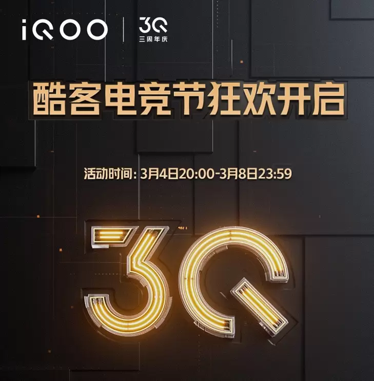 不仅如此,iQOO还会在3月4日20点、3月5日10点和3月8日10点开启“万份惊喜礼”抽奖活动。活动期间,用户登陆vivo账号进入官方商城的“iQOO三周年庆”页面即可参与抽奖活动,有机会赢iQOO 9 Pro 12GB+512GB手机。