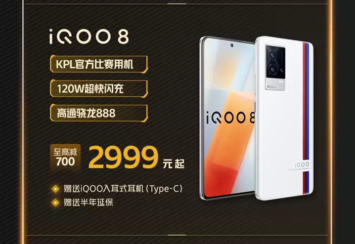 搭载了骁龙888芯片和120W超快闪充等旗舰硬件,曾是KPL官方比赛用机的iQOO 8也参与到了此次活动中来。该机提供至高700优惠,到手价低至2999起,还将赠送半年延保和iQOO入耳式耳机(Type-C)。