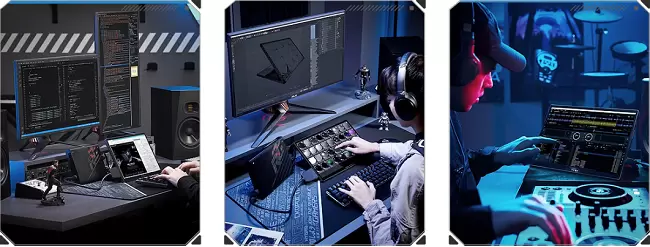 别看ROG幻X的体积不大,但却拥有可媲美游戏本的硬核实力。其搭载最新的12代英特尔酷睿i9-12900H处理器,14核心20线程设计,睿频高达5.0GHz,轻松应对多任务同时运行。搭配NVIDIA GeForce RTX 3050Ti显卡,基于新一代Ampere架构,支持实时光线追踪和DLSS2.0技术,轻松胜任视频渲染、3D建模等设计工作以及游戏娱乐;还支持双显三模显卡切换,玩家可根据不同使用场景调节混合、集显、独显三种输出模式,一机多用。值得一提的是,ROG幻X还支持无损连接RTX 3080显卡拓展坞,高达150W的性能释放实现小尺寸本也能畅玩3A的壮举。