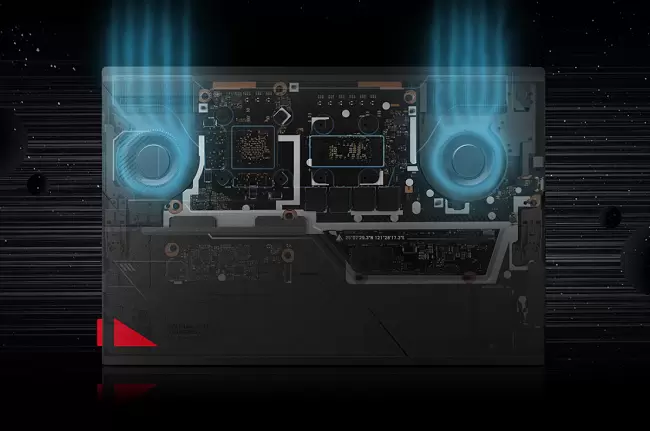 想要全力运转双芯实力,对散热也是一大挑战,ROG幻X在小巧机身内还搭载了冰川散热系统2.0增强版,在CPU区域涂抹暴力熊液态金属导热介质,热传导更高效,使得CPU温度降低约10℃,并全新升级了真空腔均温板、Arc Flow绝尘风扇、0.15mm冰翼鳍片等散热组件,有效提升散热效率,让ROG幻X能持续高性能输出。此外,还搭载ROG智能降噪技术,低功耗情况下被动散热,为用户提供安静工作环境。