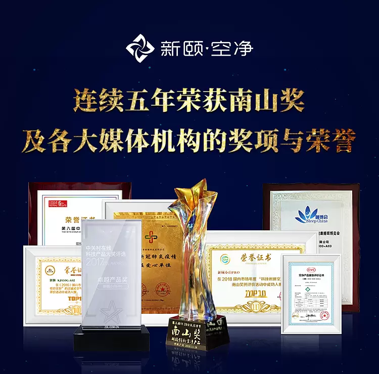 新颐是一家专注于用创新实现轻松的呼吸的企业,匠心专研空净17载,新颐得到了行业、专家学者、用户的广泛认可,旗下产品连续5年荣膺由钟南山院士名字命名并亲自颁发“南山奖”,是空净行业的实力派品牌。