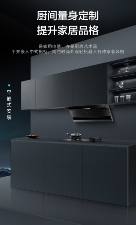 传统油烟机一般为欧式和侧吸式,顶吸油烟机安装在灶具的正上方,能将升腾到高处的油烟封留吸收,但是机型显得臃肿,低头看菜的时候不免会有碰头的情况,清洗不到位还会往下滴油,而侧吸式油烟机面对升腾到高处的油烟就无法处理。