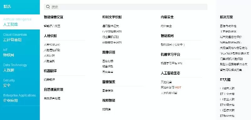 从2015年开始,阿里云推出了一系列人工智能产品,例如基于CPU、GPU、FPGA等异构计算平台,面向开发者的机器学习PAI平台,以及语音识别、图像识别、视觉识别等130多款细分产品(印刷文字识别、人脸识别、图像识别、智能语音交互和自然语言处理等),可以服务300多个不同行业的应用场景。
