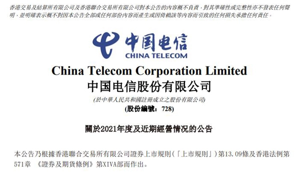 中国电信预计2021年净利润同比增长23%-25%