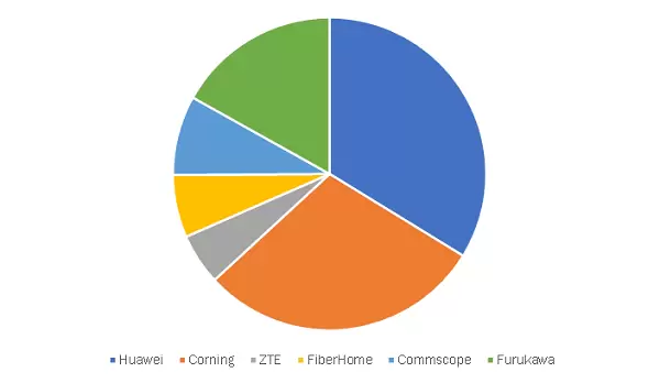 2021年全球新建FTTP采用预连接ODN方案的6大厂商市场份额