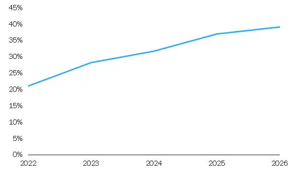 2022-2026年全球使用预连接ODN的新建FTTP家庭比例