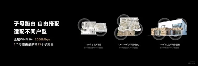 基于以上痛点,全新发布的华为路由 Q6,支持全屋WiFi 6+ 3000Mbps,1台母路由最多可拖15台子路由,通过灵活的电力线组网,达到全屋覆盖无死角。无论是中大平层,复杂户型,还是复式/别墅,通过不同的组网方案都能做到全屋覆盖无死角。子路由小巧美观,即插即用,哪里信号不好插哪里,为用户提供更优质的家庭上网环境。