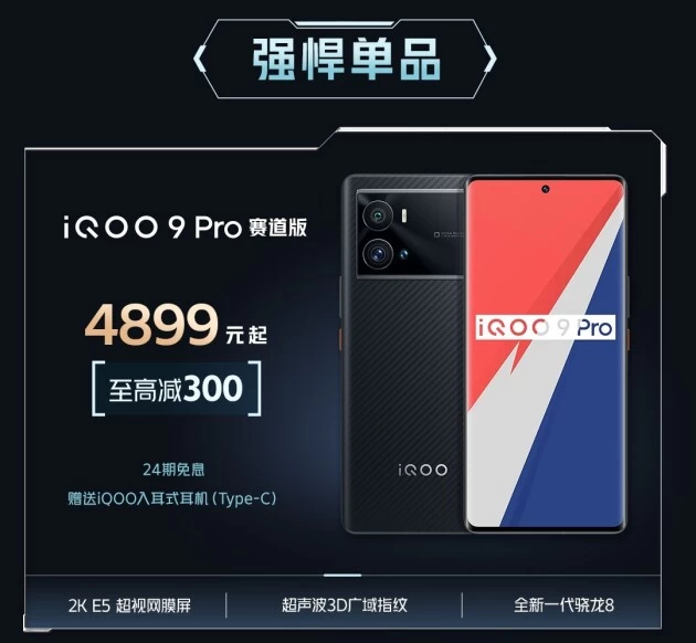前不久,iQOO旗下的最新旗舰产品——iQOO 9 Pro,迎来了全新赛道版配色的加持。这款配色版本,创新运用芳纶纤维材质。这一强韧、坚固的材质,完美契合iQOO手机的“硬核”特征,外观质感更是十分突出。此外,该机还拥有全新一代骁龙8、2K E5 超视网膜屏、120W 超快闪充、微云台双旗舰主摄影像系统的加持,具有全面而极致的旗舰表现!活动持续期间,该机至高立减300,到手价4899起,还可加享24期免息以及赠送iQOO入耳式耳机。