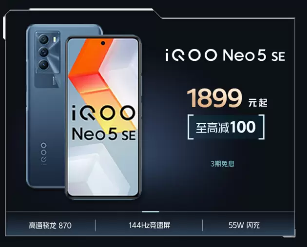 对于预算在2000~3000、想要选购中高端机型的用户来说,iQOO旗下的 Neo 系列机型,值得重点关注。其中,最新的iQOO Neo5 SE是该系列明星产品,它采用骁龙870+144Hz 竞速屏,更拥有 55W 闪充加持,展现出了越级性能体验。该机至高立减100,到手价低至1899起,并且可使用3期免息的优惠。