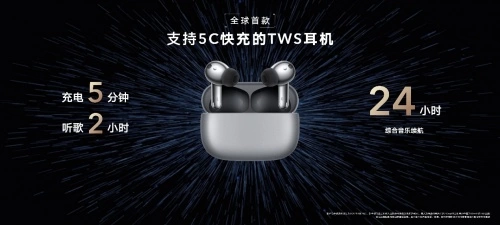 荣耀Earbuds 3 Pro还是全球首发支持5C快充的TWS耳机。电池盒给耳机快速充电5分钟,就能听歌2小时,再结合可利用荣耀Magic 4系列手机进行无线充电,荣耀Earbuds 3 Pro大大减缓了用户对耳机使用的续航焦虑感。