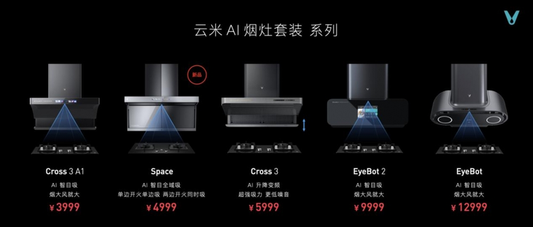 除了功能和颜值兼备的Space 云米AI智目油烟机外,云米更有包括Cross 3 、EyeBot等在内的全系列烟灶产品,满足不同用户需求,全面解决厨房油烟问题。