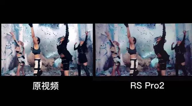 极米RS Rro 2搭载画质引擎X-VUE2.0,能达到10.7亿色彩显示,精准呈现大屏上的每一丝细腻。这次选用了BLACKPINK的MTV,画面色彩鲜艳比较适合做对比。与原视频相比,亮度和色彩会和投影出来的画面呈现有细微出入,但在快速变化的色彩中,不会出明显偏色的情况,肉眼观感还很不错。