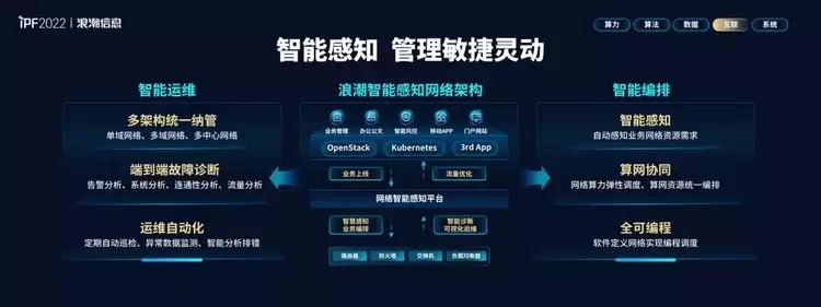 3月17日,主题为“智算创见 数实相融”的2022浪潮信息生态伙伴大会(IPF2022)正式举行,大会围绕智算的技术趋势、时代认知、发展挑战等内容进行了深入的探讨。浪潮网络作为浪潮打造智算基座的重要组成部分,也分享了在算网融合、未来网络发展、以及智能感知网络平台方面的最新进展。