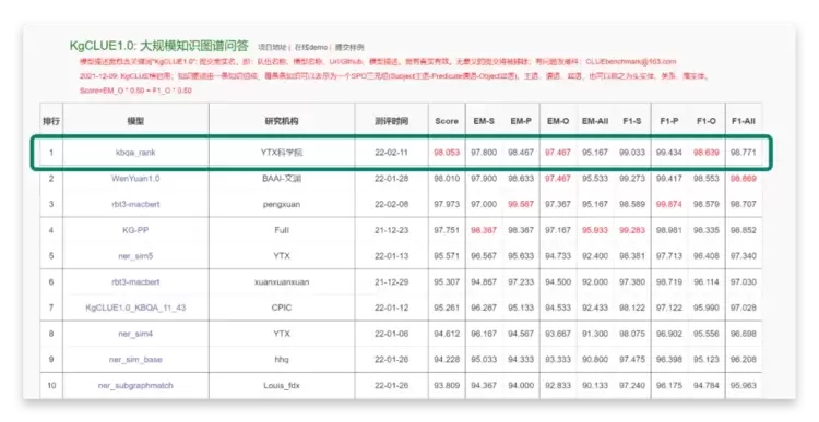 KgCLUE是中文语言理解领域最具权威性评测基准CLUE在知识图谱问答任务上的榜单。